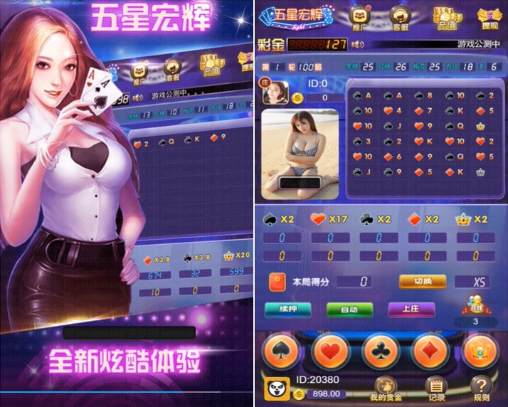全新五星宏辉H5棋牌游戏,UI使用炫酷风格设计,这是完整全套源代码,没有任何删减,可以进行二次开发,平台支持自助充值、提现,以及推广赚佣金等功能,只需简单搭建,即可上线运营